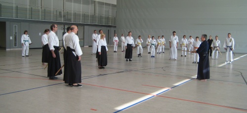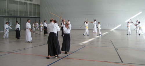 Im Laufe des Nachmittags lernten wir dann furchtlos einem „Bokkenangriff” mit einem kleinen Dreh der Körpermitte zu entgehen, um dann selbst den Angreifenden „zur Strecke” zu bringen. Natürlich waren diese Techniken als Übung für harmonisches Training zu begreifen - keiner durfte seinen Partner einfach „Niederhauen”, obwohl sich so manche Teilnehmer ganz im Sinne von „richtigen Schwertkämpfern” sahen.
