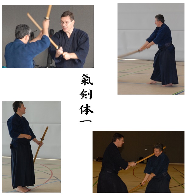 Unter diesen Zeichen stand der traditionelle Bokkenlehrgang Anfang November in Syrgenstein. Das ehrgeizige Ziel, das sich unsere Lehrer Elke Faatz und Andreas Knobloch (beide 3. Dan Aikido/ 2. Dan Iaido) gesetzt hatten war die Idee, den zahlreichen Lehrgangsteilnehmern aus BW, HE und BY die Einheit von Geist (geistiger Energie), Waffe (Bokken) und Körper zu vermitteln. Dem entsprechend waren die Übungen methodisch aufeinander aufgebaut. Beginnend mit Partner-Übungen für Handhabung des Bokkens und die rechte Distanz, führten dann die weiteren Techniken zur Kontrolle für richtiges Timing, Zielgenauigkeit und optimaler Körper-Positionierung - immer im Hinblick auf die Vereinigung/Verbindung aller Aspekte.