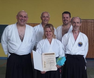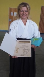 Ehrung von Andrea Schwab-Mai für 30 Jahre unermüdliche, ehrenamtliche Verbandsarbeit Im Anschluss an den DVL, am 26.06.2016 in Ostfildern, wurde unsere Sportfreundin Andrea Schwab-Mai mit der Ehrenurkunde in Gold geehrt. Sie ist seit 30 Jahren unserem Sport treu verbunden und hat sich in vielen Ehrenämtern auf Vereins-, Landes- und Bundesebene überaus engagiert eingebracht und damit das Aikido in unserem Verbandsumfeld in vielen Bereichen mitgestaltet. Wir wünschen uns, dass Andrea noch viele Jahre aktiv mitwirkt und Ihr freundliches Wesen und ihre ruhige und besonnene Art weiterhin so ansteckend auf uns übergeht.