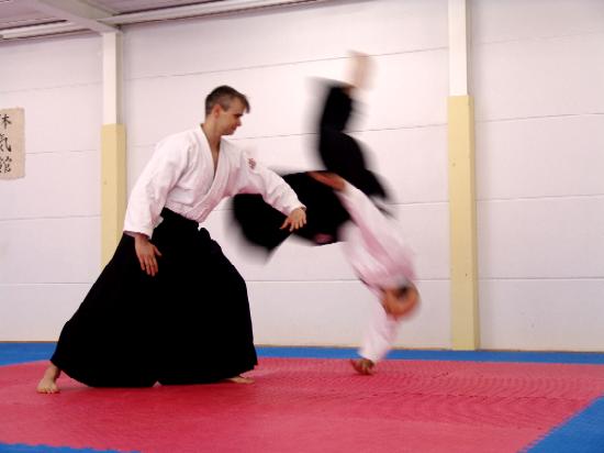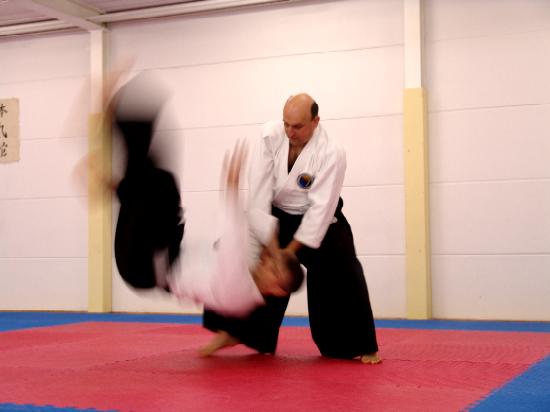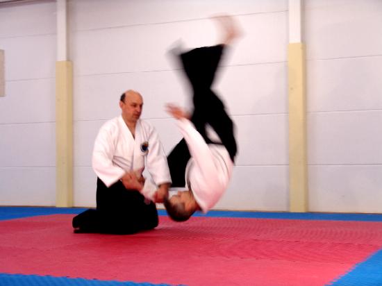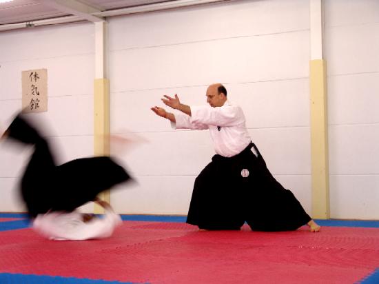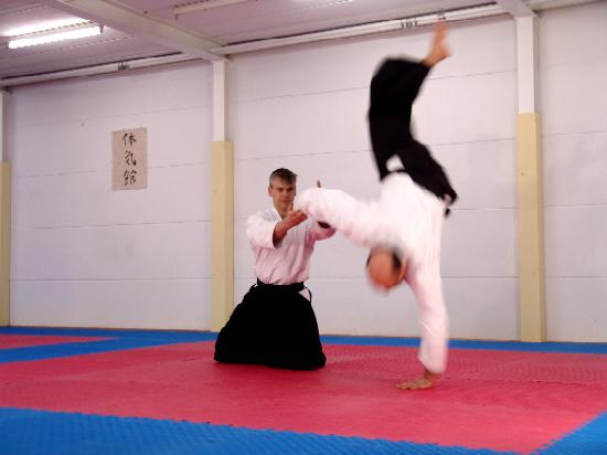 von Fiore Tartaglia (4. Dan Karate), Titel "Der Pfad der Flexibilität", erscheint Ende Mai Im Sommer 2005 meldete sich eines Abends per Telefon ein mir bis dahin Unbekannter namens Fiore Tartaglia und teilte mir mit, dass er ein Buch über die Künste des Budo schreiben möchte. Er fragte mich, ob ich ihm Informationen über uns und unser Aikido zur Verfügung stellen könnte. In zahlreichen Telefonaten und persönlichen Gesprächen konnten wir eine Menge Material zusammentragen. Natürlich gehören zu einem guten Buch auch Fotos! Dieser Termin gestaltete sich jedoch als schwierig, denn bis ein geeignetes Datum feststand, verging fast ein ganzes Jahr!!! Anfang April 2006 fuhren dann Gerhard Mai, seine Frau Andrea und ich endlich nach Deggingen, um die Aufnahmen zu machen. Nach knapp 3 Stunden angenehmer Arbeit (für die "Fotomodelle" und den Fotografen) hatten wir gute und dynamische Aikidobilder im Kasten, wie nachfolgend bewundert werden kann.