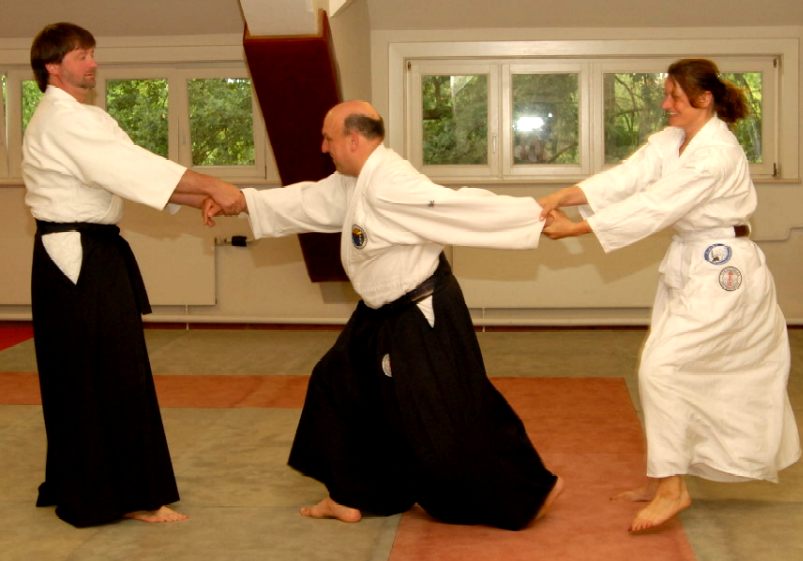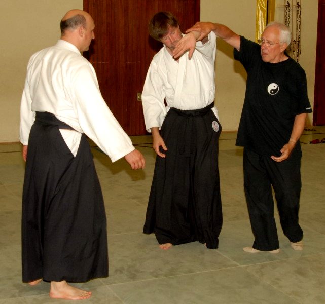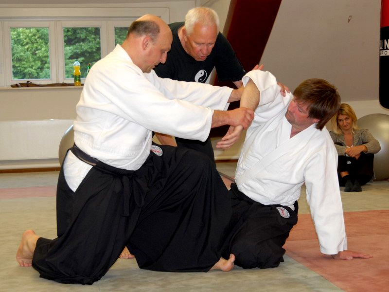 In der Woche vom 22. bis zum 27. Juni 2008 verabredeten sich Dr. Björn Rahlf, 5. Dan Aikido und Bundestrainer der Aikido-Union Deutschland e.V. (AUD) und Gerhard Mai, 5. Dan Aikido und Vizepräsident der AUD mit dem erfahrenen Budo-Meister Rolf Brand, 8. Dan Aikido, zu einem Technikseminar, um die in der AUD angestrebte einheitliche Lehre und Technik des klassischen Aikido abzugleichen und weiter voranzubringen. In diesem Jahr war dies schon das zweite Treffen der beiden 5. Dane mit gleicher Zielsetzung. Da die Zusammenkunft im Norden stattfinden sollte, war schon bei der Vorbereitung klar, den Initiator und Mitbegründer der AUD und den über die Verbandsgrenzen hinaus anerkannten Aikido-Lehrer, Rolf Brand, um seine Unterstützung zu bitten. Zu unserer großen Freude entsprach Meister Brand dem Anliegen und organisierte mit freundlicher Unterstützung des Aikido-Clubs Lübeck e.V. geeignete Trainingsmög-lichkeiten für das Vorhaben. Somit konnten wir in dieser Woche täglich rund 4 Stunden trainieren. Da Meister Brand fundierte Kenntnisse und Fertigkeiten in verschiedenen Budo-Disziplinen besitzt und über besonders ausgeprägte methodisch-didaktische Fähigkeiten verfügt, waren die dem Aikido gewidmeten Trainingseinheiten besonders intensiv und lehrreich. Sie wurden durch ausgewählte und für das Aikido nützliche Grundbewegungen des T`ai Chi Ch`uan und Teile der Säbelform des Yang-Stils aufgelockert und ergänzt. Die bei den Trainingsstunden gewonnenen neuen Eindrücke in Bezug auf die eigene Stellung und Distanz, eine der Bewegung angepasste Energieverteilung in den Schwerthänden (Tegatana) und die Konzentration, Umlenkung oder Teilung des Ki-Flusses in den eintretenden (Irimi) oder ausweichenden (Tenkan) Bewegungen, führten zu neuen Erfahrungen, die auf alle Aikidotechniken transformiert werden können. Unter Berücksichtigung dieser Erkenntnisse wurden Aiki-no-Kata (1. bis 4. Form), Morote-Waza (Formen gegen einen Doppelangriff mit zwei Angreifern), klassische und freie Verkettungen von Aikidotechniken und Verteidigungsformen gegen Messer und Schwert geübt. Die Trainingssequenzen wurden durch nützliche Erläuterungen und Hinweise des Meisters ergänzt. Ein besonders interessanter Vortrag des Kyoshi (Bewahrer der Traditionen) über die Zusammensetzung einer Technik im Sinne der Prinzipien des Budo beeindruckte die beiden Renshi nachhaltig. Zusammenfassend möchte ich noch anmerken: Zu Beginn der Woche sind wir losgezogen, um unsere technischen Fertigkeiten zu ergänzen und zu verbessern. Bis zum Ende der Woche haben wir einige unvergessliche Lehrstunden im Budo erhalten, die noch lange in uns wirken und im Rahmen der Lehrtätigkeit auch für unsere SchülerInnen nützlich sein werden. Wir danken den Mitgliedern des Aikido-Clubs Lübeck e.V. für die freundliche Aufnahme in ihren Trainingsgemeinschaften. Ein besonderer Dank gilt Meister Rolf Brand für seinen langjährigen und unermüdlichen Einsatz zur Förderung des klassischen Aikido und für die damit verbundene Unterstützung der AUD. Gerhard Mai (Vizepräsident)