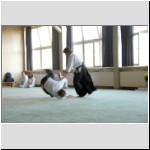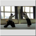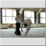 Ralf meint dazu: Und wieder ist ein gelungenes Wochenende zu Ende gegangen. Es war faszinierend, aber auch schwierig, manche Übungen, die der Lehrmeister Björn Rahlf vorzeigte, dann mit dem jeweiligen Partner umzusetzen. Doch es heißt ja nicht zu Unrecht: Es ist noch kein Meister vom Himmel gefallen. Nach dem Samstag Training war der Tag noch nicht zu Ende. Die Gäste, auch aus der Schweiz, und einige von uns gingen anschließend in die Vereinsgaststätte, um sich zu stärken und lustige, aber auch sehr interessante Gespräche zu führen. Das Sonntag Training war für manche kein Zuckerschlecken. Nach 2 Stunden intensives Training hieß es dann für alle Abschied nehmen. Für mich war dies ein sehr interessantes, hilfreiches und lehrreiches Wochenende. Ich hoffe, dass wir bald wieder die Möglichkeit bekommen, den Meister Björn einzuladen, um erneut einen Lehrgang mit ihm auszurichten. Von Dietmar: Wir konnten je 10 Meister und je 30 Schülergrade an beiden Tagen begrüßen. Geleitet wurde der Lehrgang von Björn, dem Bundestrainer vom Verband. Für viele von uns war dies das erste Training mit dem Meister. In lockerer Atmosphäre durften wir das Training bei ihm genießen. Für alle Übenden wurde das gleiche gezeigt, und so konnten auch die "Anfänger" mal an den großen Techniken der Fortgeschrittenen schnuppern. Einer meint es ernst: Mein erster Lehrgang war schön, spannend, anstrengend und lehrreich, so dass ich mir vorgenommen habe, nun regelmäßig Lehrgänge zu besuchen. Von Idun: Was der Lehrgang mir persönlich gegeben hat? Einen MORDS Muskelkater! Nur mit Hilfe beider Arme war ich im Stande, mich die Treppen hoch zu hieven. Warum nur wohnen wir nicht auf einer Ebene? Dabei hatte ich während den Trainingsstunden nicht bemerkt, daß es besonders anstrengend war. Voll ausgetrickst, würde da mein 5-jähriger Sohn sagen! Was noch? Ich habe dort zum ersten Mal zu zweit mit einem Meister üben dürfen. Konnte mir nicht verkneifen, das eine oder andere Mal einen Siegestanz aufzuführen, wenn der Schwarzgurt außer Balance geriet und auf den Boden purzelte. Je länger ich diesen komischen Sport mache, desto mehr kann ich ihn weiterempfehlen. Kai`s Eindrücke: Bei den Vorführungen legte Björn sehr viel Wert auf die absichtslose Durchführung, d. h. daß auf den Einsatz von Kraft verzichtet wird. Schon beim Ausweichen soll die Körperstellung richtig und tief sein. So ist es gut möglich, die Gleichgewichtsbrechung herbeizuführen! TSV-Musberg e.V.