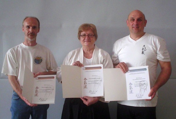 Im Rahmen eines großen Festaktes in Frankfurt zum 10jährigen Jubiläum der Aikido-Union Deutschland wurden 3 Meister aus dem Aikido-Centrum Bachtal im SV-Altenberg e.V. und vom SVH-Königsbronn geehrt. Stephan Hopf und Annemarie Gaschler (beide 3. Dan Aikido) erhielten vom Präsidenten der AUD aufgrund ihrer langjährigen Tätigkeit im Vorstand des Landesverbandes die Ehrenurkunde der AUD in Bronze. Gerhard Mai (5. Dan Aikido) bekam für seine 10jährige Vorstandstätigkeit als Vizepräsident der Aikido-Union Deutschland sogar die Ehrenurkunde in Silber überreicht. Wir sind sehr stolz auf unsere verdienten Meister und ihr wertvolles ehrenamtliches Wirken und freuen uns über diese angemessene Anerkennung. Herzlichen Glückwunsch!