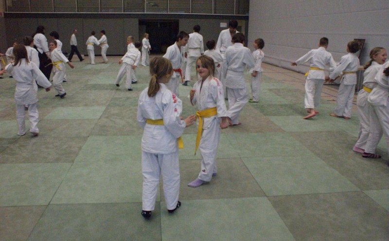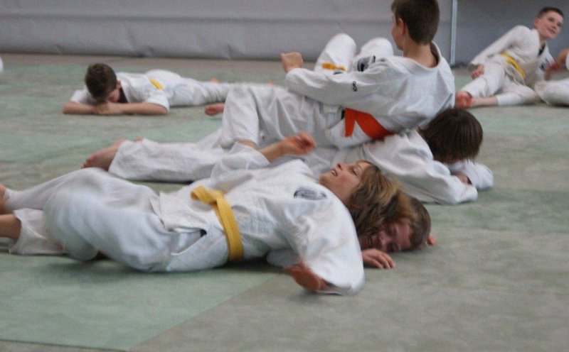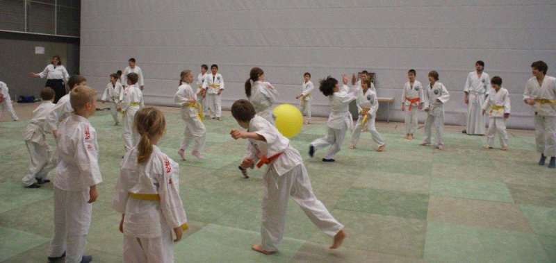 Nach dem allgemeinen Aufwärmtraining und diversen lustigen Spielen, wurden die Kinder von den Lehrern Susanne Stupperich (2.Dan) aus Bronnen und Alexander Stock (1.Kyu) aus Königsbronn zu Fallschulübungen in verschiedene Leistungsgruppen eingeteilt.