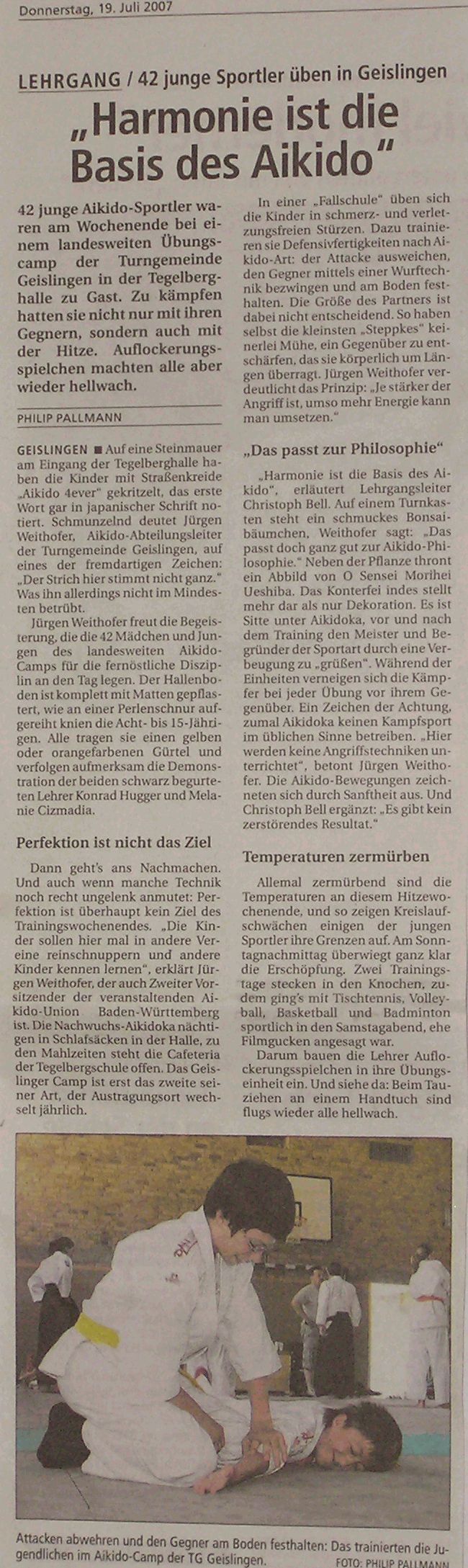 Zeitungs-Bericht über Jugend-Camp Juni '07